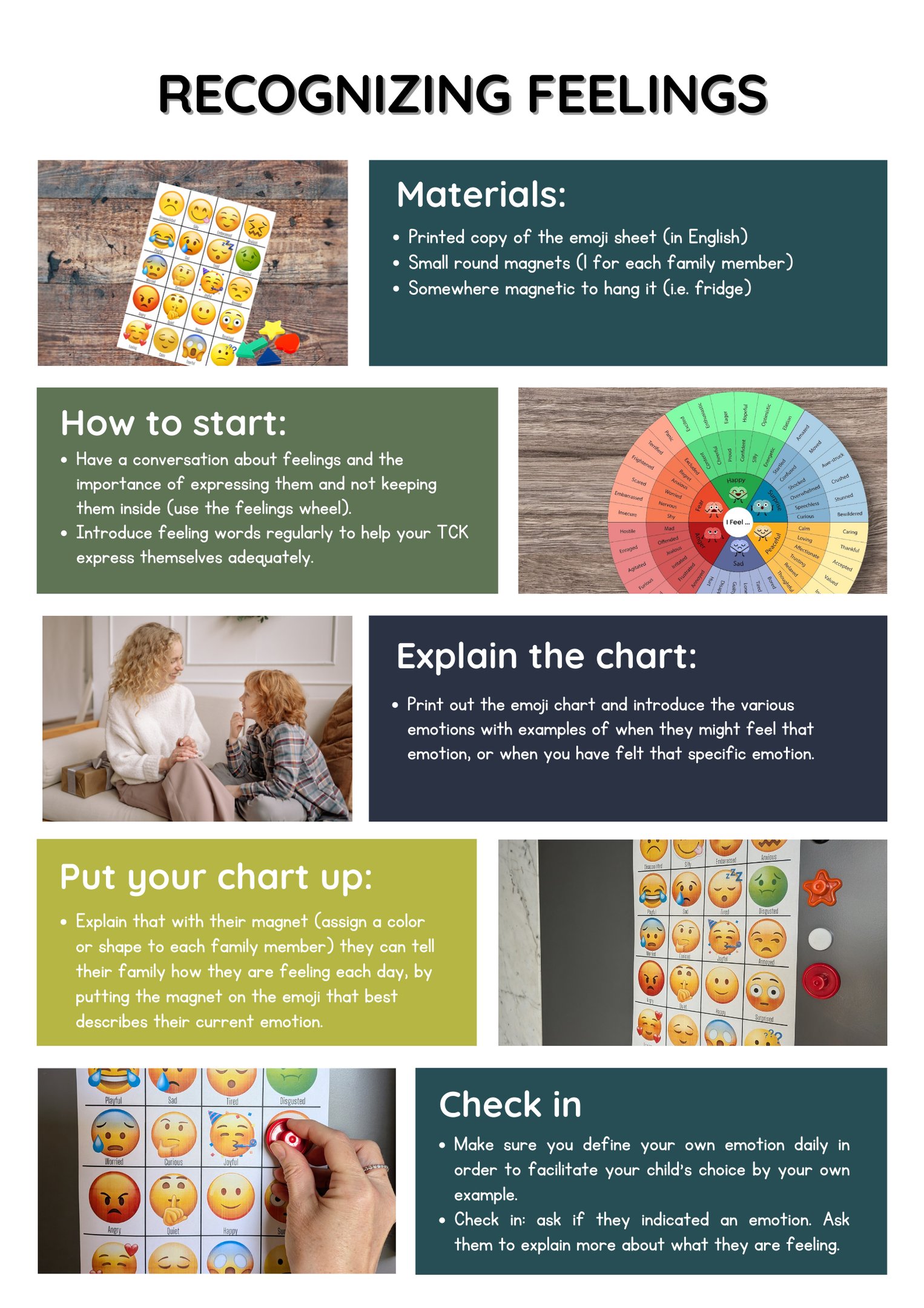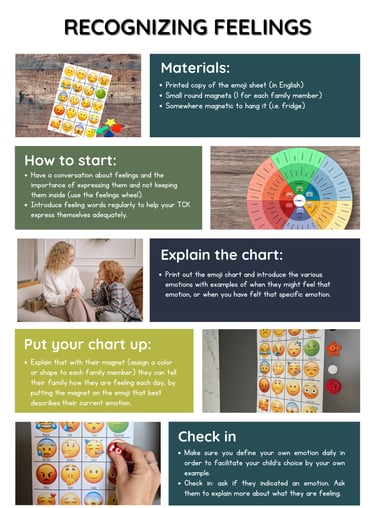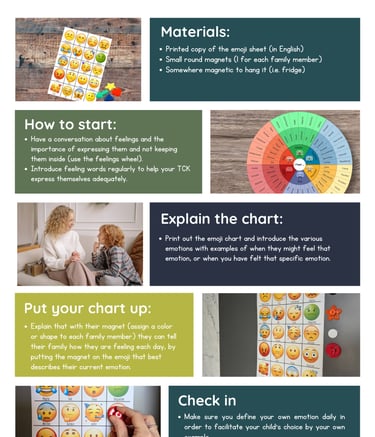Questa attività da svolgere come famiglia o team, facilità l'abilità del TCK di riconoscere ed esprimere le proprie emozioni.