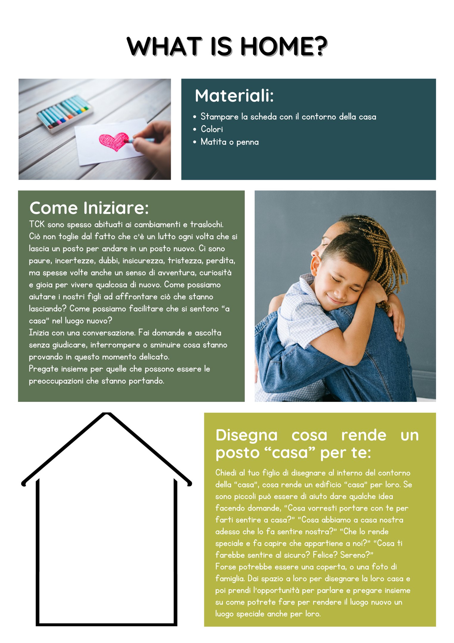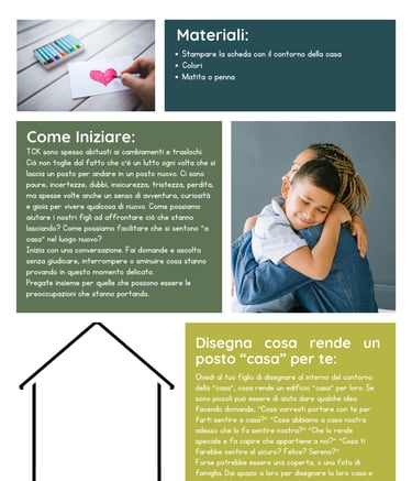 Come possiamo aiutare i nostri figli ad affrontare ciò che stanno lasciando? Aiuta tuo figlio a disegnare al interno del contorno del edificio, cosa rende un edificio “casa” per loro.