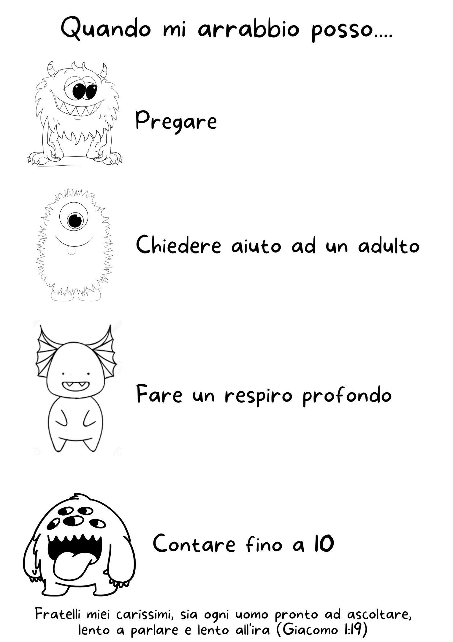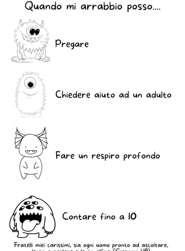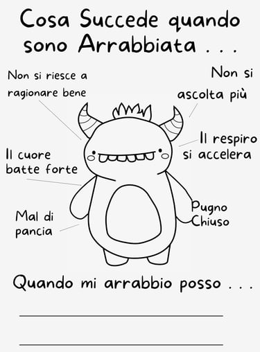 Queste schede sono un modo carino per introdurre la gestione delle emozioni, in questo caso la gestione della rabbia. Potete colorare insieme mentre parlate di soluzioni e poi appendere la scheda completato sul frigo come promemoria.