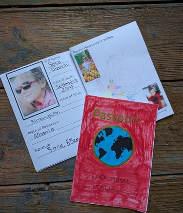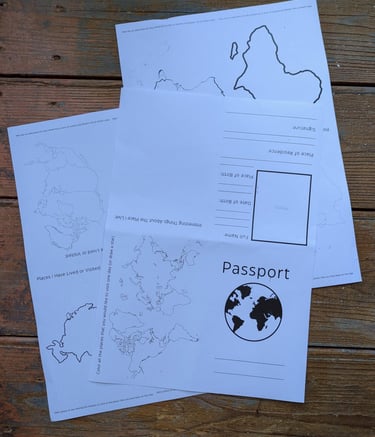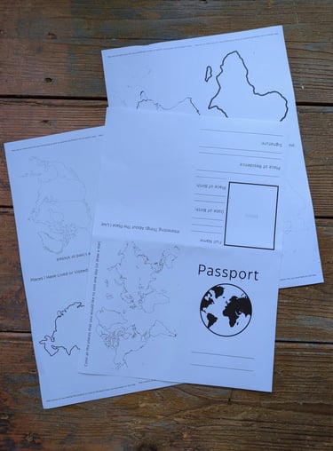 Help kids explore their global identity with this passport activity. There are three pages to print and put together with questions to answer, spaces for photos and things to color in.